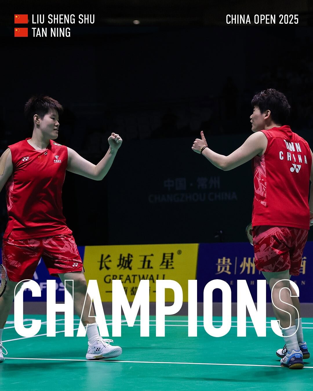 Лише через тиждень після 100%-ї перемоги на змаганнях Світового туру у Японії, команда Yonex знову повторила свій абсолютний успіх у Китаї! На турнірі “China Open 2025”, що належить до категорії World Tour Super 1000 і має призовий фонд 2 млн дол США, гравці Yonex здобули перемогу у всіх п’яти категоріях!