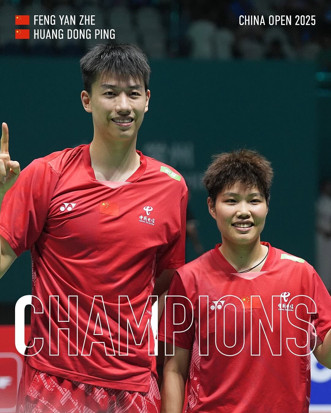 Перші номери світового рейтингу Feng Yan Zhe у дуеті з досвідченою Huang Dong Ping здобули «золото» China Open у змішаній парній категорії. Обидва спортсмени обирають ракетки Yonex Astrox 77 Pro.