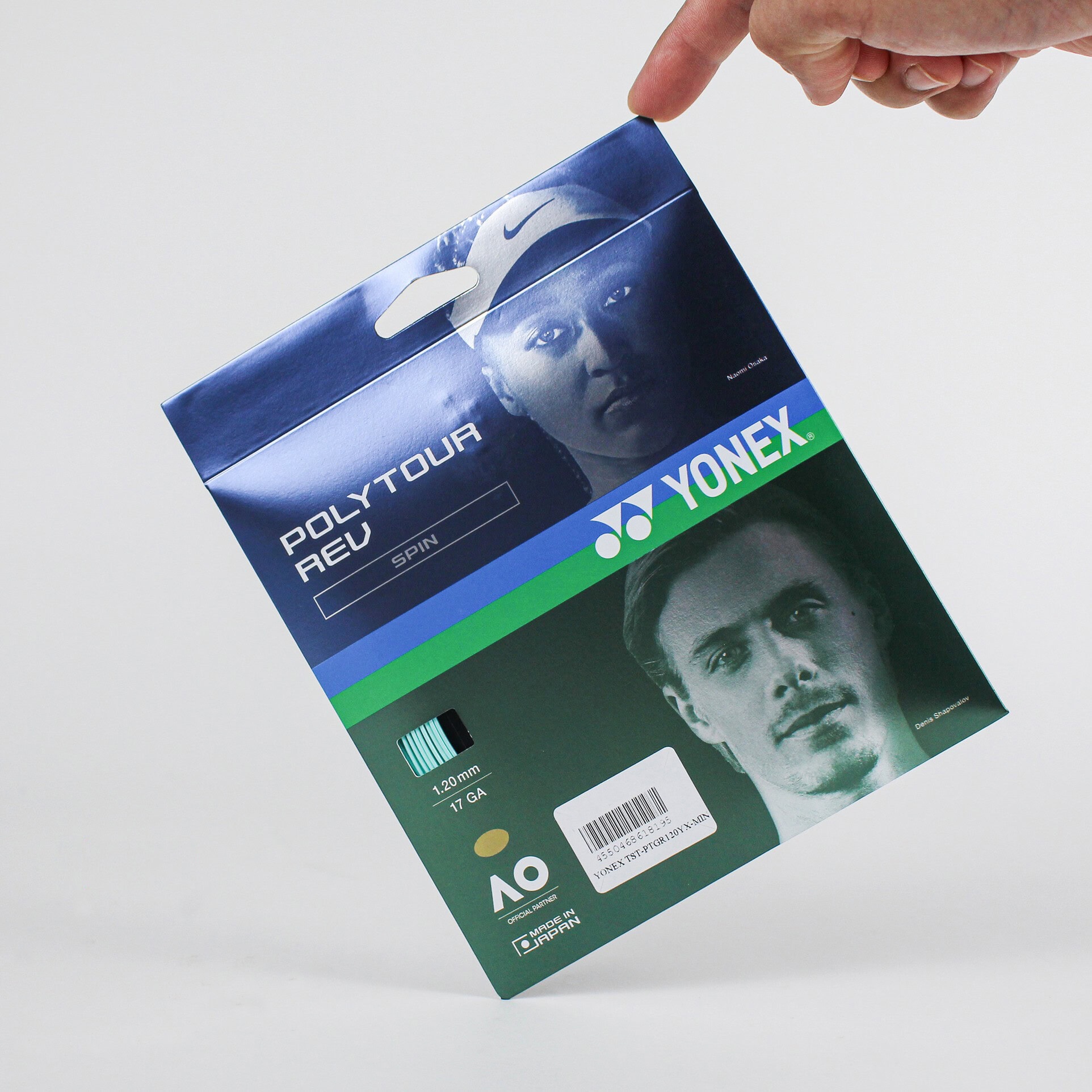Одна з найбільш поширених струн серед професійних гравців Yonex. Вона вироблена з поліестерового моноволокна, має восьмикутну структуру і зовнішнє силіконове покриття. Щільно гранована текстура даної струни дозволяє додавати обертання м’ячу, а силіконове покриття допомагає струні рухатись під час контакту з м’ячем, що також збільшує спін. Yonex Polytour Rev надає гравцям високий рівень контролю, та є трохи “м’якішою” струною серед інших в категорії “Spin”.