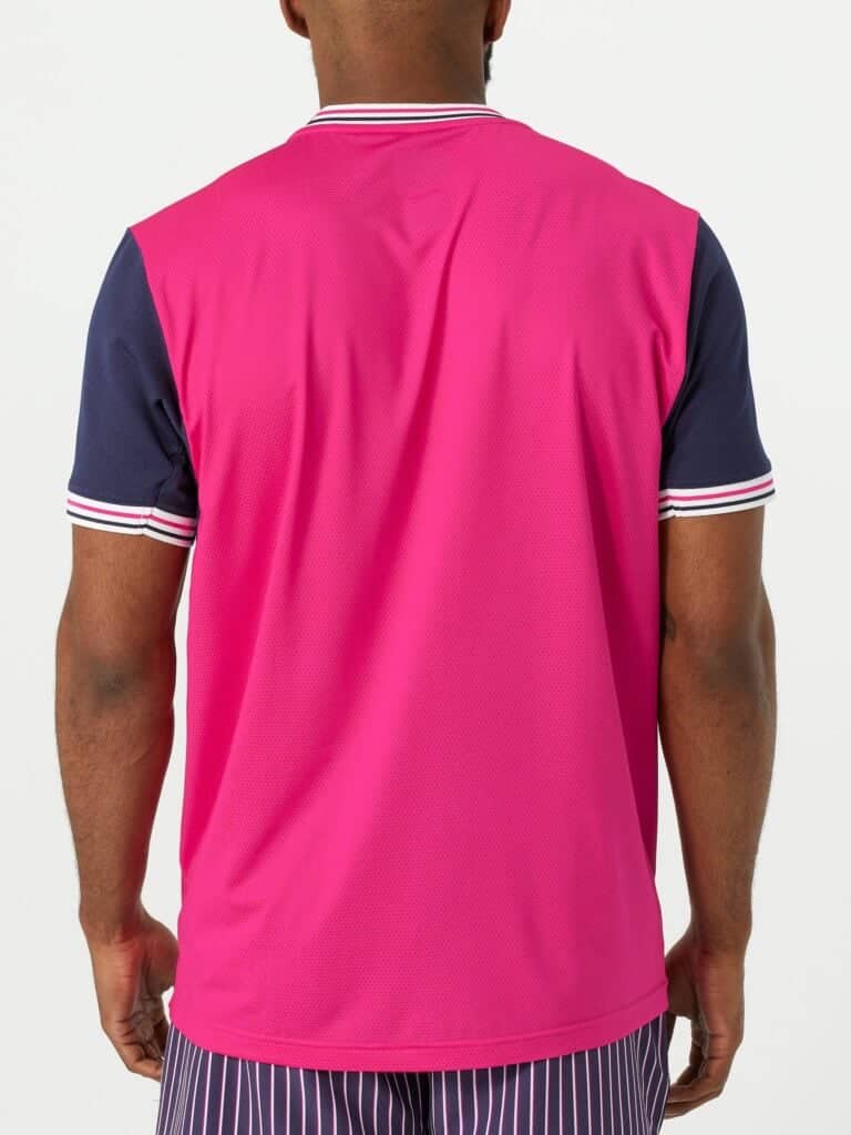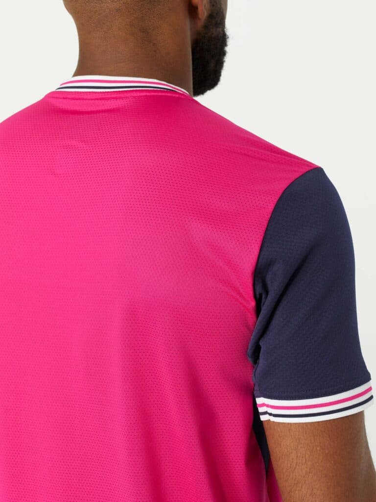 Стильний дизайн футболки із контрастними рукавами включає два ґудзика на комірці, виділені рукава. Спеціальні сітчасті вставки по бокам футболки забезпечують гарний повітрообмін.