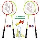 Цей комплект для бадмінтону включає 4 ракетки Yonex GR360 салатового та помаранчевого кольорів, набір японських пластикових воланчиків Yonex Mavis 350 (6 штук) та 4 змінні фірмові намотки Yonex АС102 у подарунок – все, що необхідно для комфортної гри!