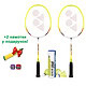 У набір для бадмінтону Yonex Junior входять: 2 надійні та міцні фірмові ракетки Yonex Muscle Power 2 Junior, набір із 6 пластикових воланчиків яскраво-жовтого кольору Yonex Mavis 350 та 2 змінні намотки Yonex на ручку ракетки.