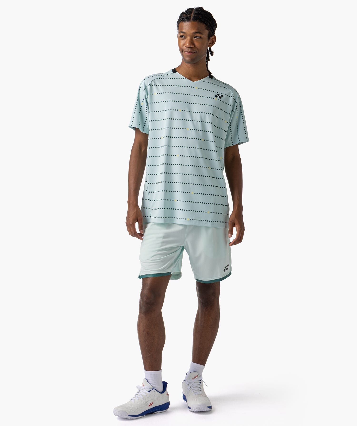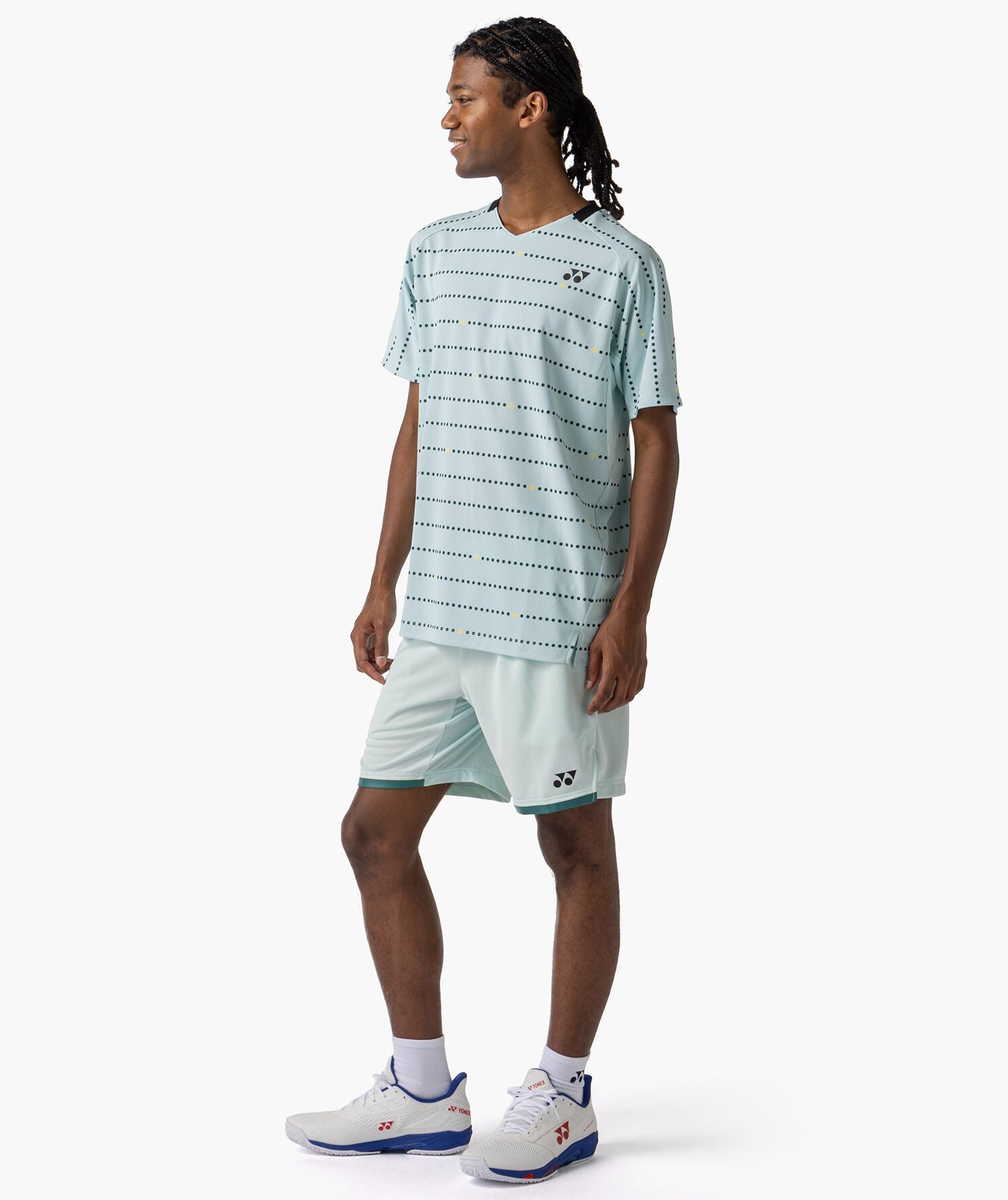 Світлий відтінок Ice Blue додає образу свіжості та гармонійно поєднується з іншими елементами спортивної екіпіровки Yonex.